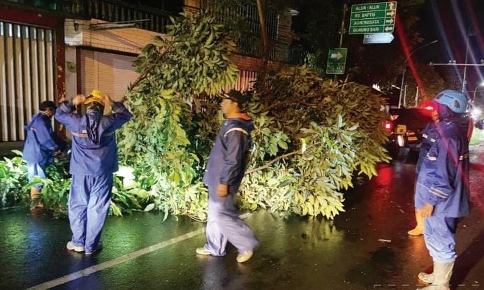 BATU – Angin kencang yang menerpa Kota Batu selama dua hari belakangan ini menimbulkan beberapa pohon tumbang. Badan Penanggulangan Bencana Daerah (BPBD) Kota Batu mencatat, ada lima pohon tumbang di sejumlah wilayah di Kota Batu sejak Sabtu (31/12) hingga Minggu (1/1) dini hari.