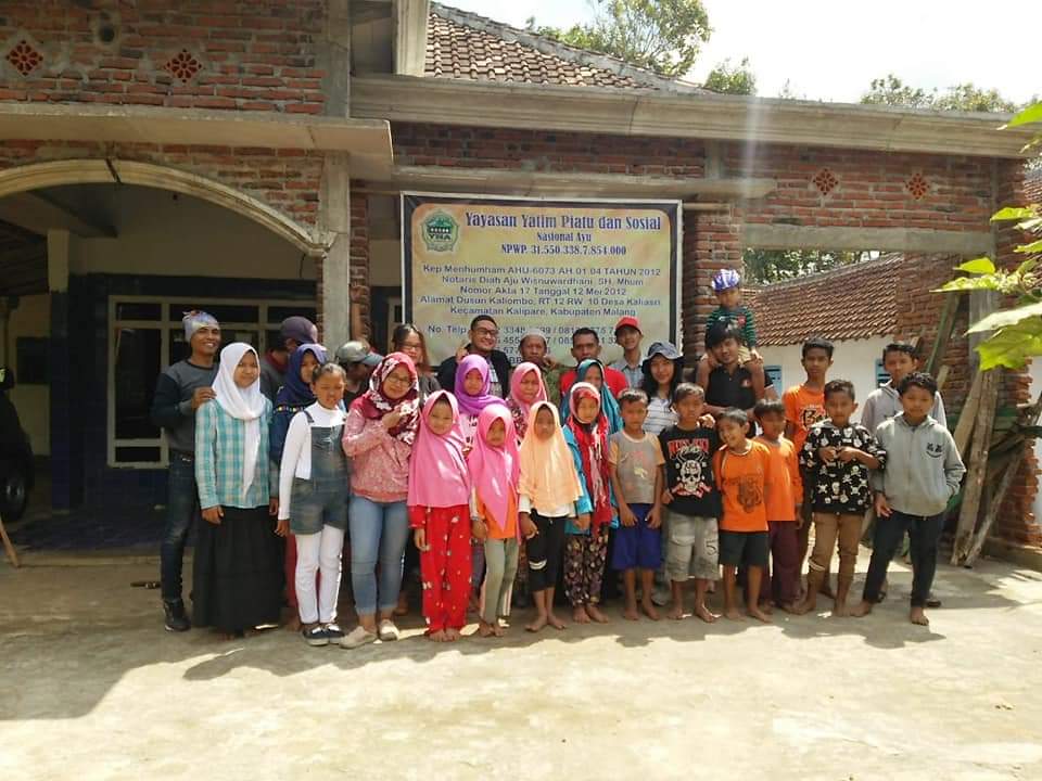 Jiwa sosial sudah lama melekat dalam diri Ayu Sri Wahyuni, 57, dan almarhum suaminya, Muhammad Ridwan. Saat merantau ke Jakarta, pasangan suami istri itu kerap membagikan makanan kepada orang tidak mampu. Pulang ke Kalipare, keduanya mendirikan yayasan yatim piatu dan sosial bernama Nasional Ayu.